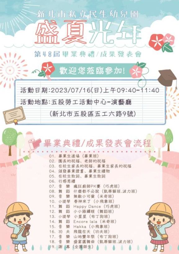 07月16日(日)民生幼兒園第48屆畢業典禮【盛夏光年】暨成果發表會